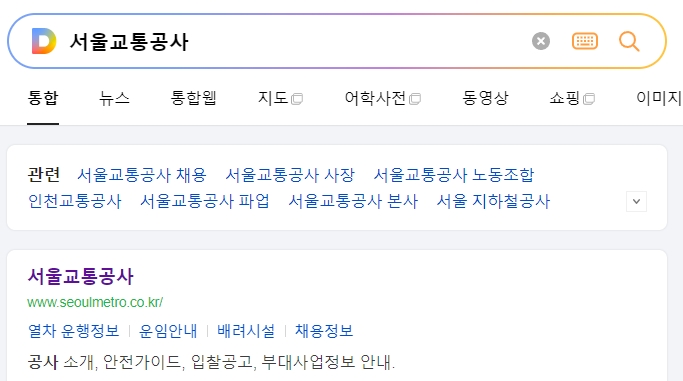1. 서울교통공사 홈페이지에 접속했습니다. 홈페이지에서는 공사 소개, 안전가이드, 입찰공고 등 다양한 부대사업 관련 정보를 확인할 수 있어요. 특히 지하철 이용객을 위한 정보가 잘 정리되어 있는 플랫폼입니다.