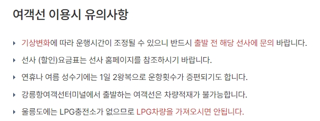 강릉 울릉도 배편 시간표