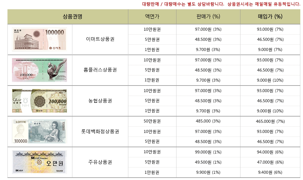 4. 상품권을 교환할 때 가게마다 가격 차이가 크지 않지만, 금액이 클 경우 미리 전화로 가격을 물어보고 협상을 시도하는 것이 좋습니다. 소액 상품권일 경우에는 가격 차이가 미미하지만, 큰 금액을 다룰 때는 몇 군데 가게를 비교하여 조금이라도 유리한 조건을 찾는 것이 중요합니다.