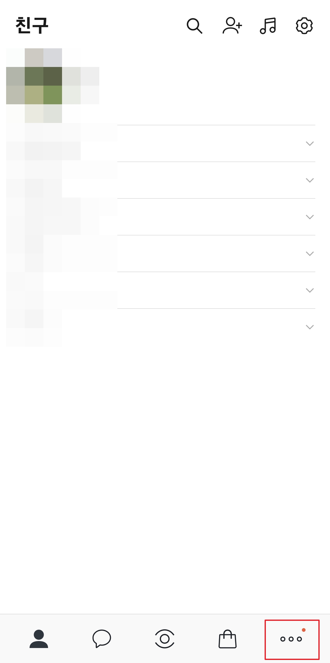 1. 카카오톡을 실행한 후, 우측 하단에 있는 점 3개가 찍혀 있는 '더보기' 버튼을 눌러주세요. 이후, 더보기 메뉴에서 우측 상단에 있는 톱니바퀴 모양의 설정 버튼을 클릭하면 됩니다. 중요한 점은 친구창의 설정 버튼과 이 설정창은 다르니 꼭 더보기에서 설정을 들어가야 합니다.