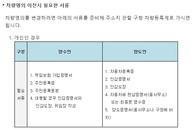 자동차 이전시 필요 서류
