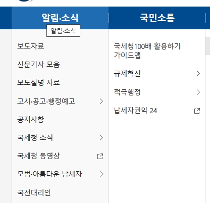 국세청 홈페이지 바로가기