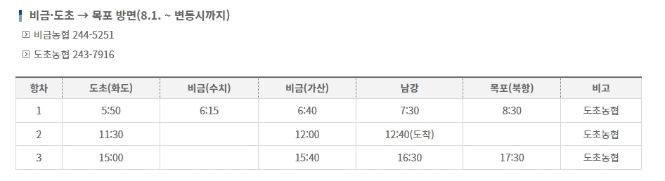 비금도 배 시간표