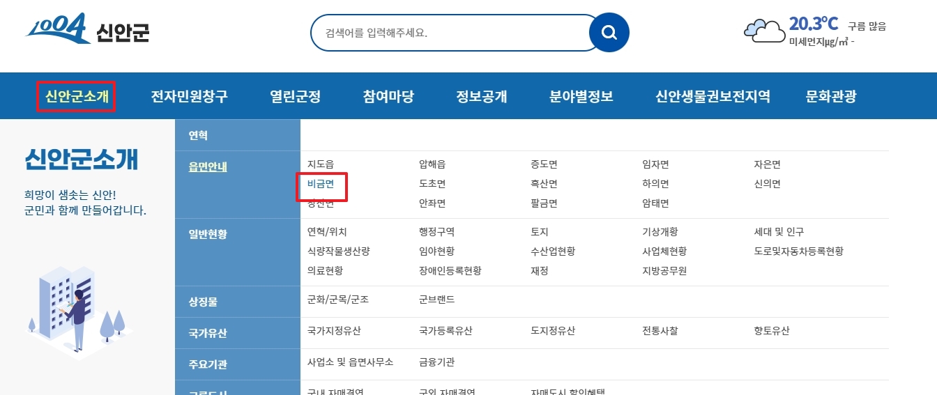 1. 전라남도 신안군에 위치한 군청 홈페이지는 군정 주요 정책과 전자 민원창구, 관광 정보 등 다양한 서비스를 제공합니다. 압해읍 천사로에 위치한 군청은 행정 정보뿐만 아니라 신안군 내 다양한 면(읍)의 지역 정보를 소개하고 있으며, 관광객들이 자주 찾는 지역에 대한 안내도 제공하고 있어요.