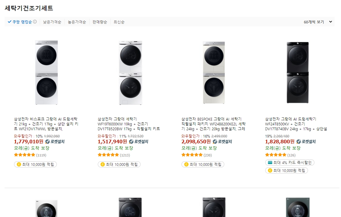 7. 삼성의 그랑데와 LG의 워시타워 등 인기 있는 세탁기·건조기 세트도 확인할 수 있습니다. 각각의 브랜드는 특유의 기술과 디자인을 제공하며, 소비자의 선호에 따라 선택할 수 있습니다. 특히 워시타워는 공간 효율성 면에서 인기가 높습니다.