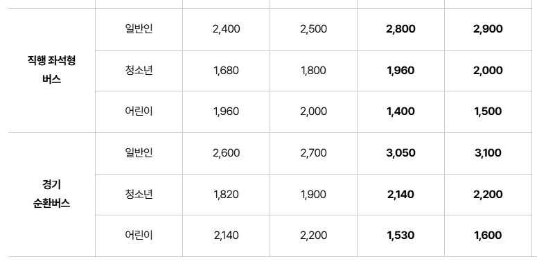 직행 좌석형 버스는 장거리 이동을 주로 하는 버스 유형으로, 요금이 상대적으로 높은 편입니다. 일반인 요금은 카드로 2,400원에서 2,800원으로 오르며, 청소년과 어린이 요금도 각각 인상됩니다. 현금 결제 시에도 요금 차이가 나므로 카드 사용이 더 경제적입니다.
