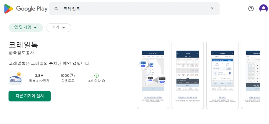 1. 플레이스토어에서 코레일톡을 검색한 후 다운로드 버튼을 클릭하여 설치를 시작하세요. 간단한 검색만으로 코레일톡을 찾을 수 있어 손쉽게 앱 설치가 가능합니다. 설치가 완료되면 바로 기차표 예매와 조회 기능을 이용할 수 있습니다.