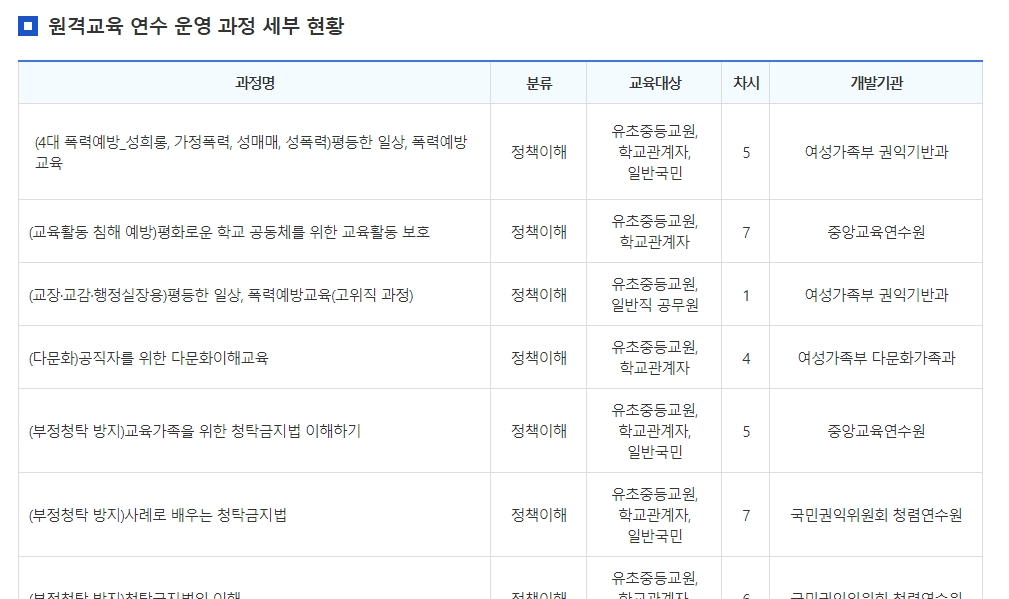 6. 원격교육 연수 운영 과정의 세부 사항도 홈페이지에서 확인할 수 있습니다. 필요하다면 홈페이지를 방문하여 세부 내용을 살펴보세요. 다양한 연수 과정이 준비되어 있습니다.