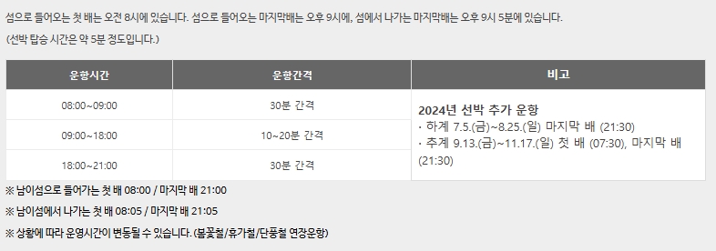 남이섬 배 시간표
