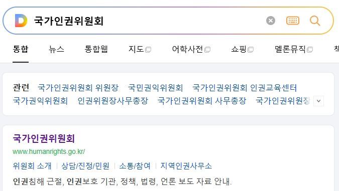 1. 국가인권위원회 홈페이지로 접속합니다. 이 사이트는 대한민국의 인권 보호와 인권침해 근절을 목표로 활동하는 국가 기관의 공식 웹사이트로, 다양한 정책과 법령, 언론 보도 자료 등을 제공하고 있습니다. 인권침해를 예방하고 구제하는 방법부터 인권 교육, 인권 관련 소식까지 폭넓은 정보를 담고 있습니다.