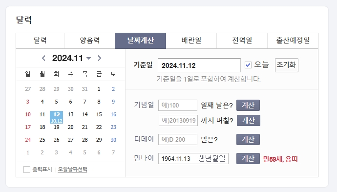 1. 인터넷에서 나이 계산기를 검색하면 만나이를 계산할 수 있는 다양한 도구가 나옵니다. 이 만나이 계산기에 본인의 생년월일을 입력한 후 결과로 만 60세가 나오면, 해당 연도에 환갑을 맞이하는 것이며, 그렇지 않다면 환갑이 아닌 것입니다.