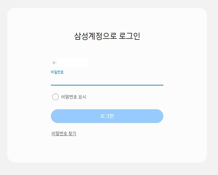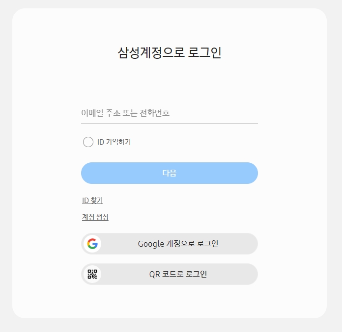 3. 홈페이지에 접속하면 상단 메뉴에 로그인 버튼이 있습니다. 이 버튼을 눌러 삼성 계정으로 로그인합니다. 계정이 연결되어 있으면 다음 단계로 넘어갑니다.