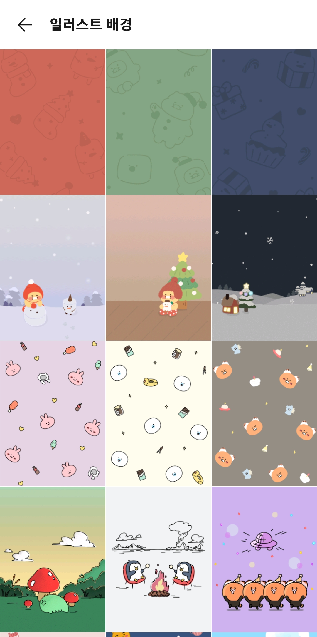 일러스트 배경은 조금 더 개성 있는 채팅방 분위기를 만들 수 있는 옵션입니다. 다양한 스타일의 일러스트가 제공되는데, 취향에 따라 심플한 그림이나 약간의 패턴이 들어간 디자인을 선택할 수 있습니다. 다만, 일러스트 디자인은 선호에 따라 다르게 느껴질 수 있습니다. 복잡하거나 화려한 배경보다는 깔끔하고 단순한 디자인을 선호한다면, 상대적으로 심플한 일러스트 몇 가지가 괜찮은 선택이 될 것입니다. 시각적인 요소가 많은 경우에는 대화 내용에 집중하기 어려울 수 있기 때문에, 자신이 편안하게 느낄 수 있는 디자인을 고르는 것이 중요합니다.
