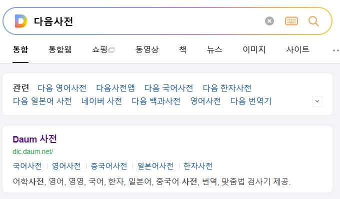 1. 다음사전 홈페이지에 접속합니다. 다음사전은 다양한 단어의 정의를 쉽게 검색할 수 있는 플랫폼으로, 한국어를 포함한 여러 언어의 사전적 의미를 제공합니다. 특히 전통적이고 역사적인 단어를 검색하는 데 유용합니다.
