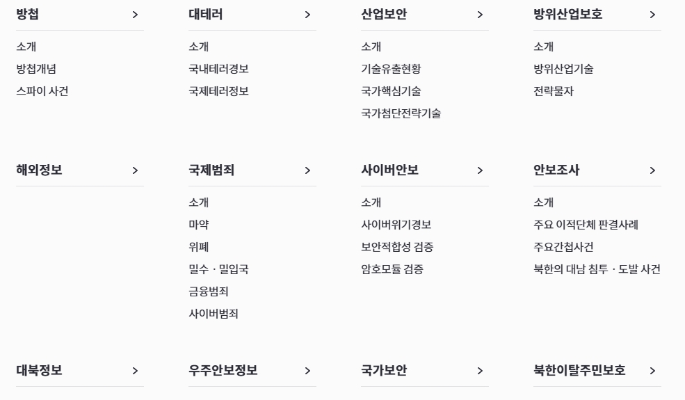 또한, 국가 안보와 관련된 최신 동향과 뉴스도 확인할 수 있습니다. 테러 위협, 사이버 공격, 기술 유출 등 국가 안보와 관련된 주요 이슈에 대해 국민들에게 정보를 제공하고, 대응 방안을 소개함으로써 국가 안보에 대한 국민의 이해를 돕습니다.