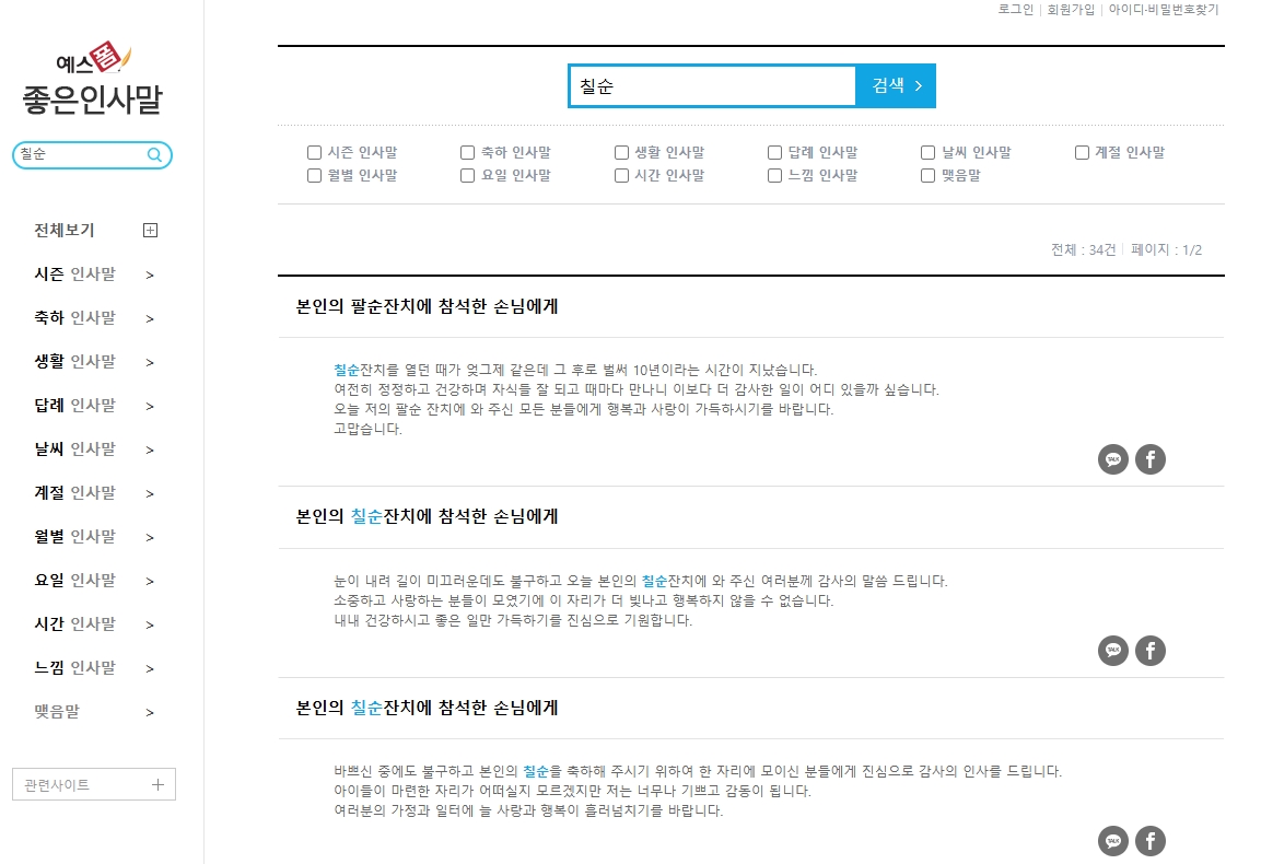3. 구순을 검색창에 입력하여 관련 문구를 확인합니다. 검색 결과로는 다양한 구순 축하 문구가 나타나지 않는 경우가 있을 수 있습니다. 예를 들어, 구순 검색어로 직접적인 결과가 없을 경우에는 회갑, 팔순, 칠순 등과 연관된 문구를 추가적으로 탐색해야 합니다. 이는 상황에 따라 유사한 축하 문구를 활용할 수 있는 가능성을 제공합니다.