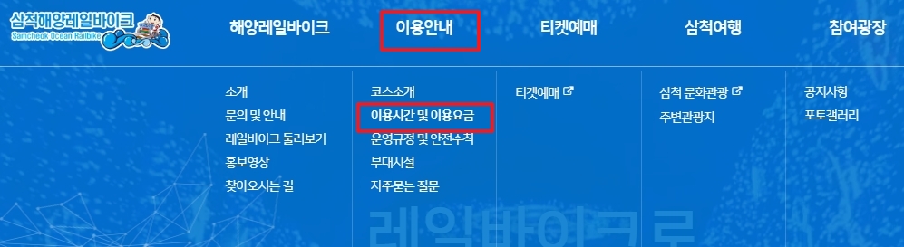 1. 홈페이지 상단 메뉴에서 이용안내를 클릭하신 후, 하위 메뉴 중 이용시간 및 이용요금을 선택하면 해당 정보를 확인할 수 있습니다. 이 과정을 통해 모든 운행 시간과 요금 정보가 모인 페이지로 바로 이동합니다.