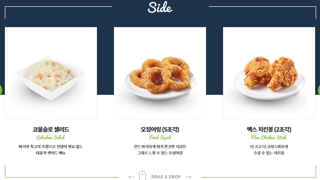 2. 상단 메뉴에서 브랜드 버튼을 클릭한 후 페이지 이동, 메뉴안내를 선택하고, 하위 메뉴에서 메뉴소개를 클릭합니다. 이곳에서 다양한 버거와 사이드 메뉴, 음료 정보를 확인할 수 있습니다.