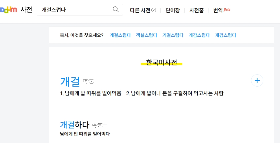 1. 먼저 다음사전 홈페이지로 들어갑니다. 이곳은 다양한 단어와 표현을 쉽고 빠르게 찾아볼 수 있는 온라인 사전으로, 단어의 뜻뿐만 아니라 한자의 구성, 유래, 예문 등 다양한 정보를 제공합니다. 개걸스럽다와 같은 단어를 검색할 때도 매우 유용한 플랫폼입니다.