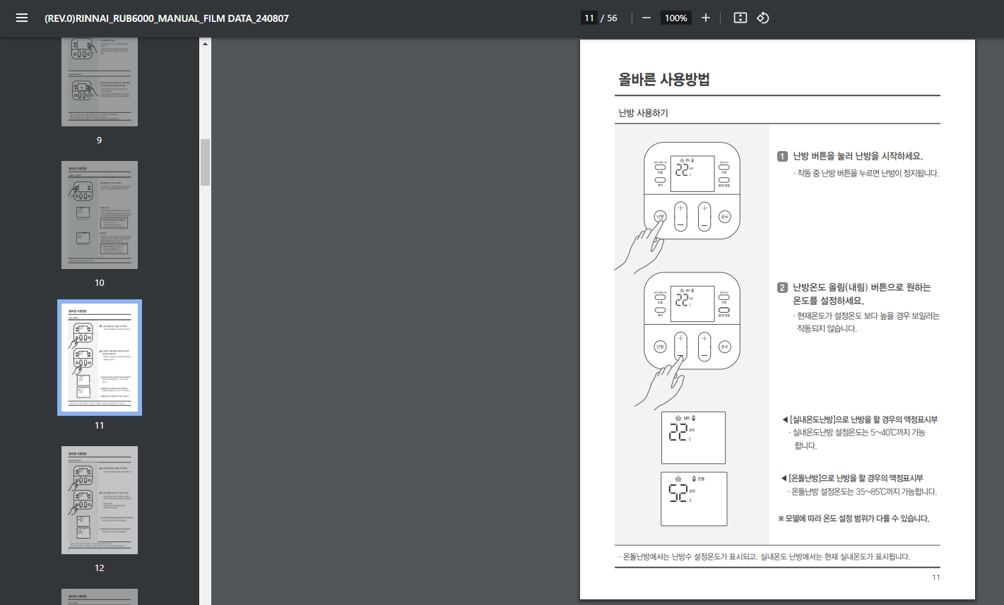 3. 본인의 보일러 모델을 찾는 과정에서, 모든 보일러 모델이 비슷한 사용법을 가지기 때문에 반드시 동일한 모델을 찾을 필요는 없습니다. 비슷한 기능을 가진 모델을 선택해도 충분히 유용한 정보를 얻을 수 있습니다. 원하는 모델을 선택한 뒤 설명서 항목을 클릭하면 세부적인 사용법이 나타납니다.