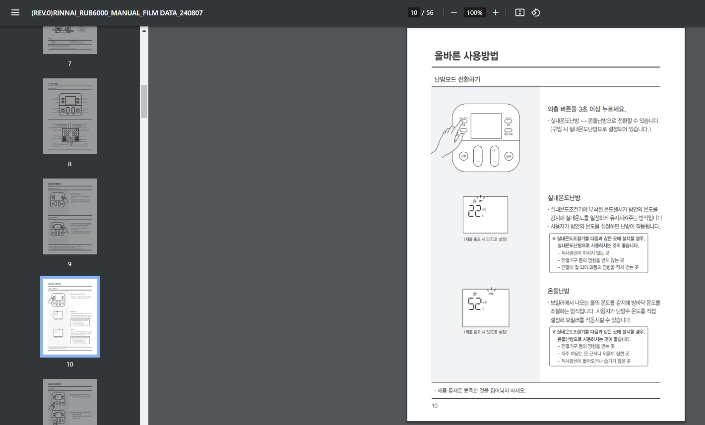 린나이 보일러의 온도조절기는 사용자 친화적으로 설계되어 있어, 모델이 달라도 기본적인 사용법은 비슷합니다. 버튼이나 아이콘의 위치와 이름이 다를 수 있으니, 조작 전 온도조절기에 표시된 설명을 참고하는 것이 중요합니다. 만약 사용법이 헷갈린다면, 유사한 모델의 설명서를 참고하거나 간단한 기능부터 하나씩 조작해 보며 익숙해지는 것이 좋습니다.