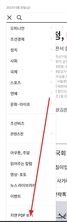 3. 좌측의 메뉴가 열리면 하단에 있는 지면 PDF 보기를 클릭합니다. 메뉴에서 여러 옵션 중 ‘지면 PDF 보기’를 찾을 수 있습니다. 이 기능은 실제 신문 지면을 PDF 형식으로 확인할 수 있는 서비스로, 신문을 종이로 보는 것과 유사한 경험을 제공합니다. 이 메뉴를 선택하면 독자들은 과거 기사나 최신 신문을 날짜별로 확인할 수 있으며, 필요에 따라 다운로드하거나 프린트할 수도 있습니다.
