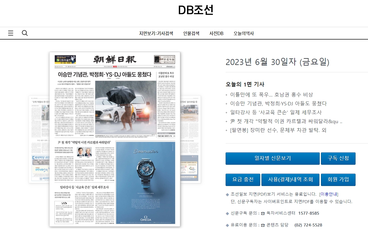 조선일보 신문 지면 보기