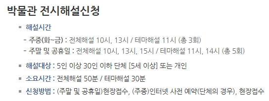 해설 소요 시간은 전체해설 50분, 테마해설 30분이 소요되므로 시간을 고려해 신청하시기 바랍니다.