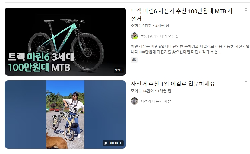 1. 유튜브에 접속하면 다양한 자전거 추천 관련 영상을 찾을 수 있습니다. 검색창에 MTB 자전거 추천이라고 입력하면 산악 자전거 입문자를 위한 추천 리스트부터 상세 리뷰까지 다양한 콘텐츠가 표시됩니다. 유튜브는 입문자뿐만 아니라 경험 많은 라이더들에게도 자전거를 선택하는 데 유용한 정보를 제공합니다.