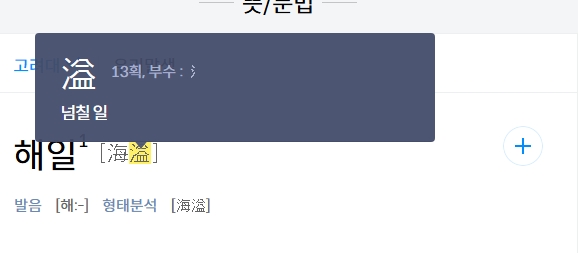 6. 또한, 검색 결과에서 해(海)와 일(溢)이라는 개별 한자도 확인할 수 있습니다. 해(海)는 바다해로, 물과 관련된 의미를 담고 있으며, 부수로 물수(氵)를 포함합니다. 일(溢)은 넘칠일이라는 뜻으로, 물이 넘치거나 가득 찬 상황을 나타냅니다. 이처럼 각 한자의 뜻과 부수, 쓰임새를 하나하나 살펴볼 수 있어 단어의 의미뿐 아니라 한자의 원리까지 깊이 이해할 수 있습니다.