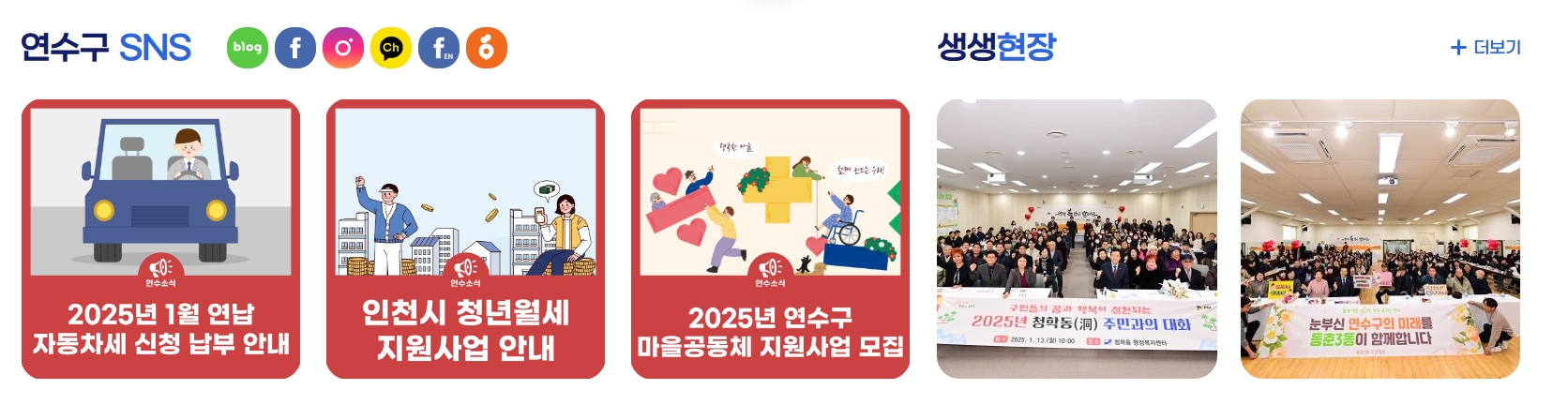 연수구청 홈페이지는 인천광역시 연수구와 관련된 다양한 정보를 제공하는 공식 창구입니다. 주민들을 위한 행정 서비스, 공지사항, 행사 일정, 민원 처리 등 생활에 필요한 정보를 쉽게 확인할 수 있습니다. 특히 구정 소식과 주민 편의를 위한 온라인 민원 서비스가 잘 갖추어져 있어, 지역 주민들에게 유용한 도구로 활용됩니다.