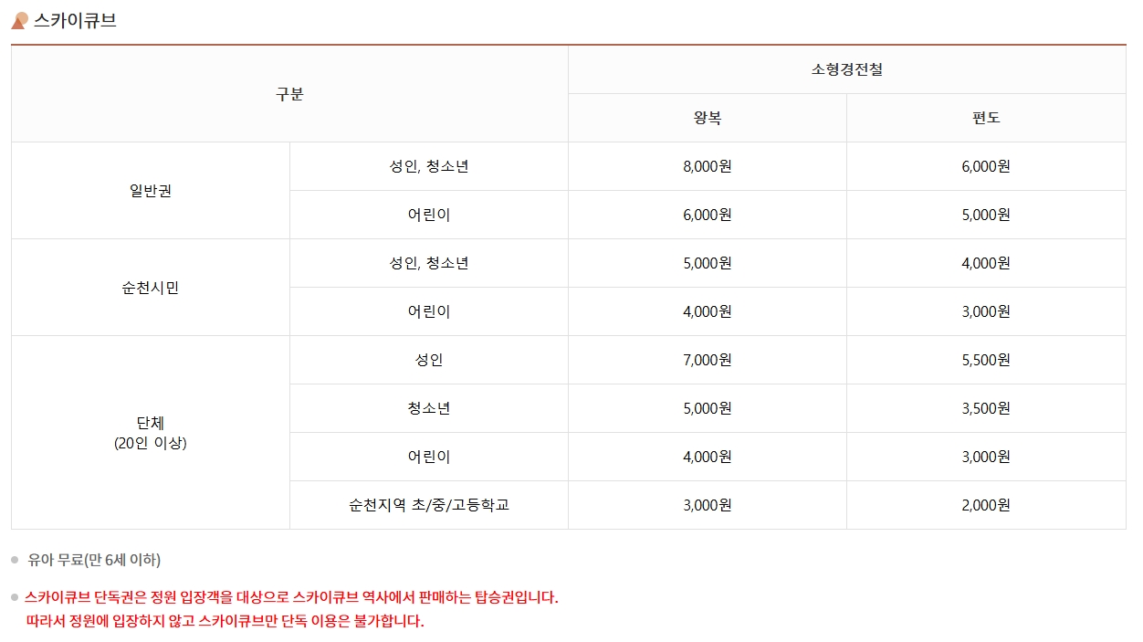 스카이큐브 탑승권은 정원 입장권 소지자를 대상으로 판매되며 스카이큐브 단독 이용은 불가능합니다.