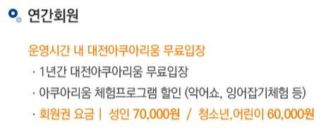 연간회원으로 가입하면 운영시간 내 언제든지 입장료 걱정 없이 들어갈 수 있어요. 성인권 70,000원, 청소년·어린이권 60,000원으로 책정돼 한 해에 세 번 이상 방문한다면 확실히 가성비가 좋습니다.