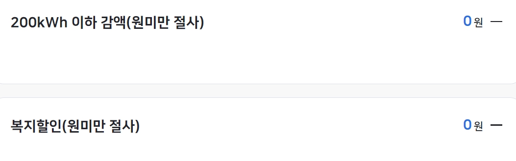 8. 복지할인이나 사용량 감액 같은 추가 혜택을 받을 수 없는 경우, 이 항목은 0원으로 표시됩니다. 아무것도 선택하지 않더라도 자동 계산되기 때문에 걱정은 안 하셔도 돼요.