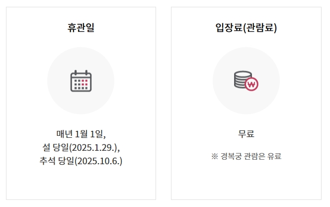 국립민속박물관의 휴관일과 입장료 정보도 매우 중요합니다. 휴관일은 매년 1월 1일, 설날과 추석 당일이며, 2025년 기준 설날은 1월 29일, 추석은 10월 6일입니다. 이날을 제외하고는 대부분의 날짜에 관람이 가능하다는 점에서 매우 접근성이 좋습니다. 또한 입장료는 무료로, 누구나 부담 없이 방문할 수 있습니다. 단, 별도로 연결된 경복궁 관람은 유료이므로 경복궁까지 함께 방문하실 분들은 참고해 주세요.