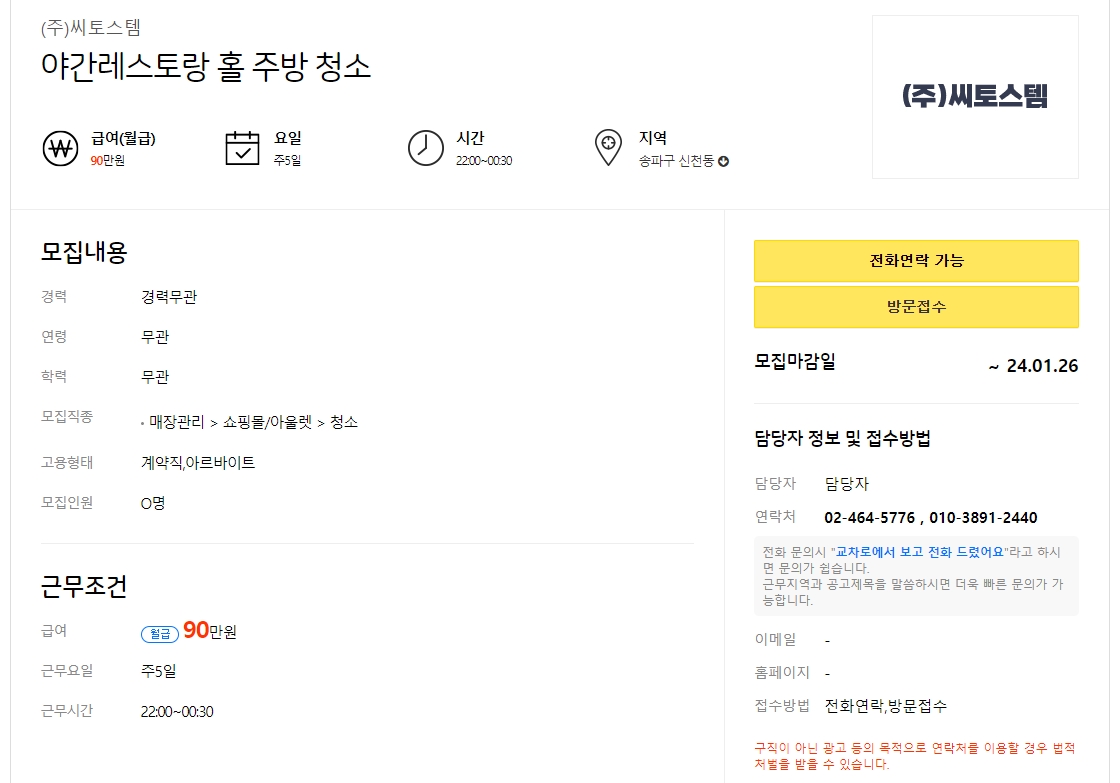6. 공고를 클릭하면 급여, 근무 요일, 시간, 위치 같은 세부사항이 한눈에 들어옵니다. 이런 부분 꼼꼼히 확인해야 나중에 불편함 없이 일할 수 있겠죠? 조건이 마음에 들면 지원 방법도 같이 안내되어 있으니 참고하세요.