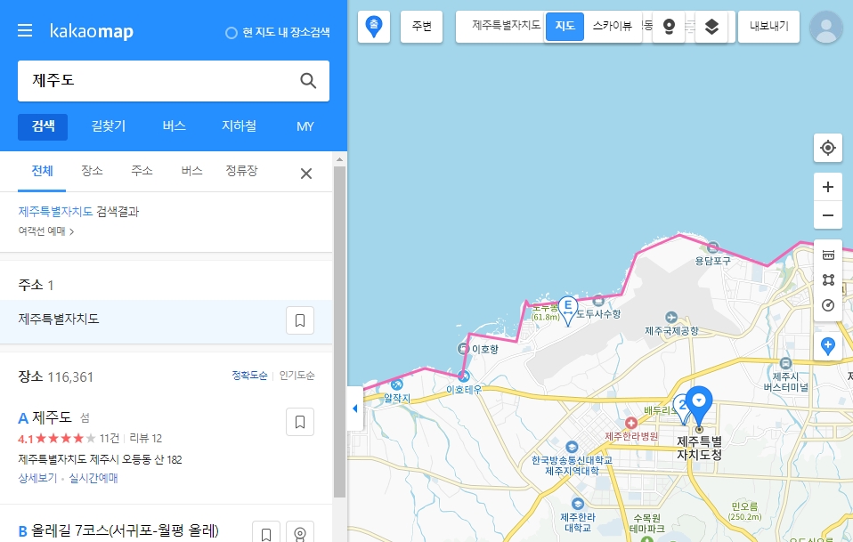 세 가지 앱을 병행하면 맛집과 카페는 네이버지도로, 버스 정보는 카카오맵으로, 트레킹 코스나 해안 절경은 구글지도로 살펴보는 식으로 각기 장점을 살려 여행 준비를 하면 훨씬 수월해요.
