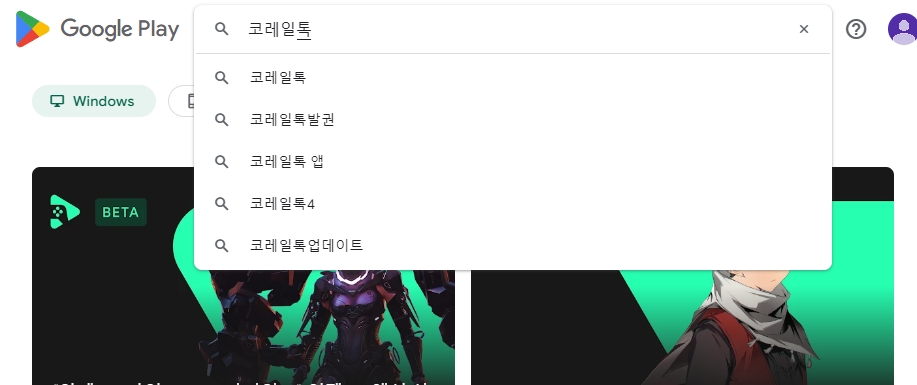 2. 플레이스토어 상단에 있는 검색 아이콘을 눌러 주세요. 검색창이 열리면 코레일톡이라고 입력하신 후 엔터를 눌러 검색 결과를 확인하시면 됩니다. 유사한 이름의 앱이 많기 때문에 철도청 로고가 있는 공식 앱인지 꼭 확인해 주세요.