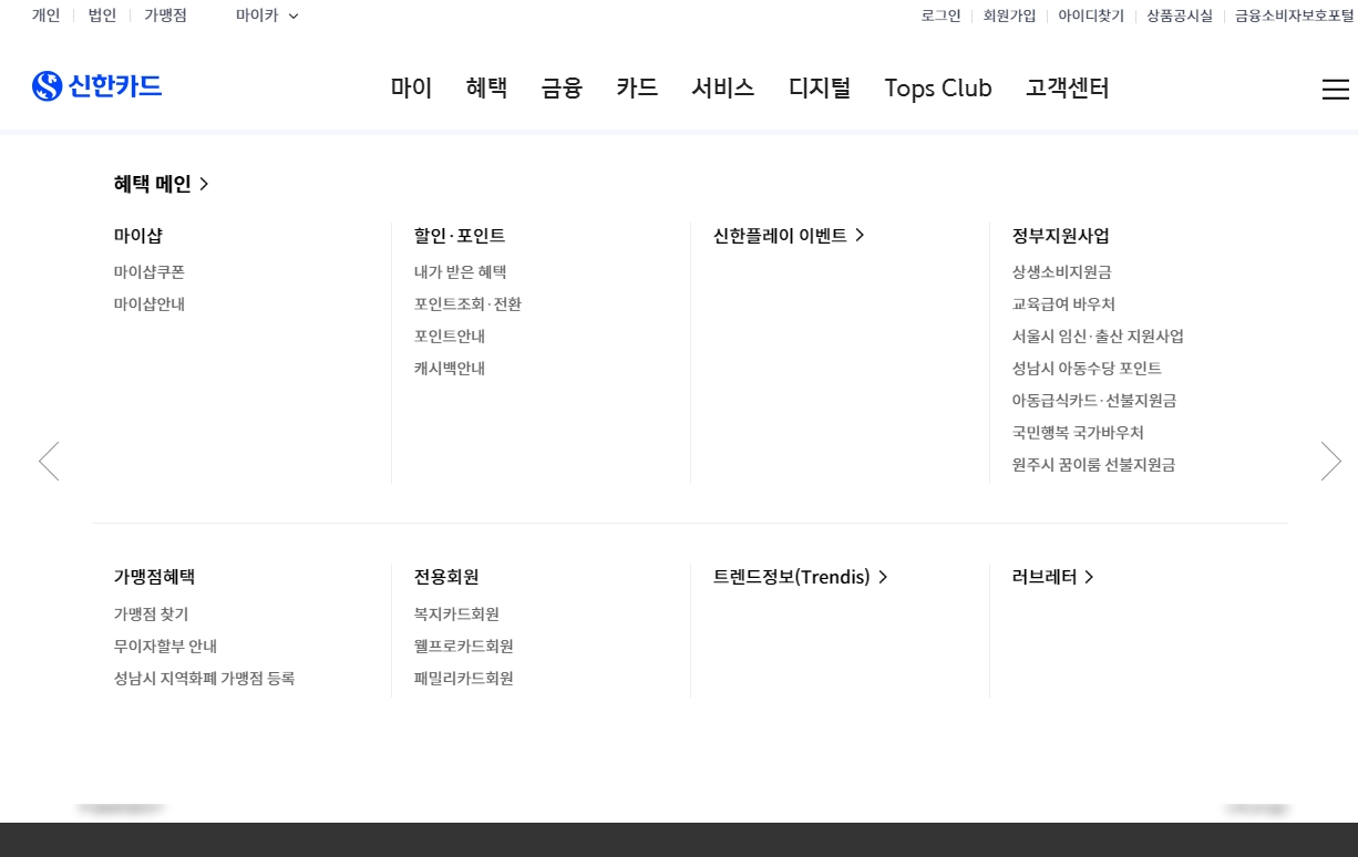 1. 신한카드 공식 홈페이지에 들어가면 다양한 카드 상품과 서비스에 대한 정보가 한눈에 정리되어 있습니다. 카드 종류, 혜택, 이벤트 소식까지 보기 쉽게 구성되어 있어서 필요한 정보를 직접 찾아보기 좋습니다.
