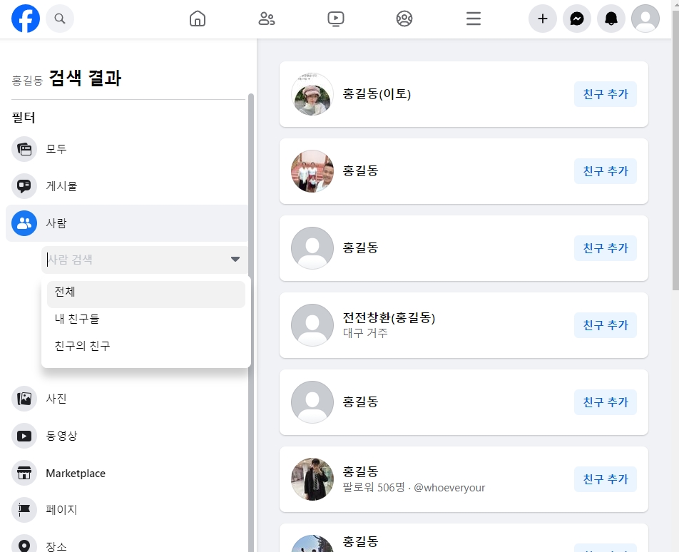 4. 필터 기능을 활용하면 훨씬 편리해요. 친구 여부, 사는 도시, 다녔던 학교, 직장 등 다양한 조건을 추가해서 원하는 사람을 빠르게 찾을 수 있습니다.
