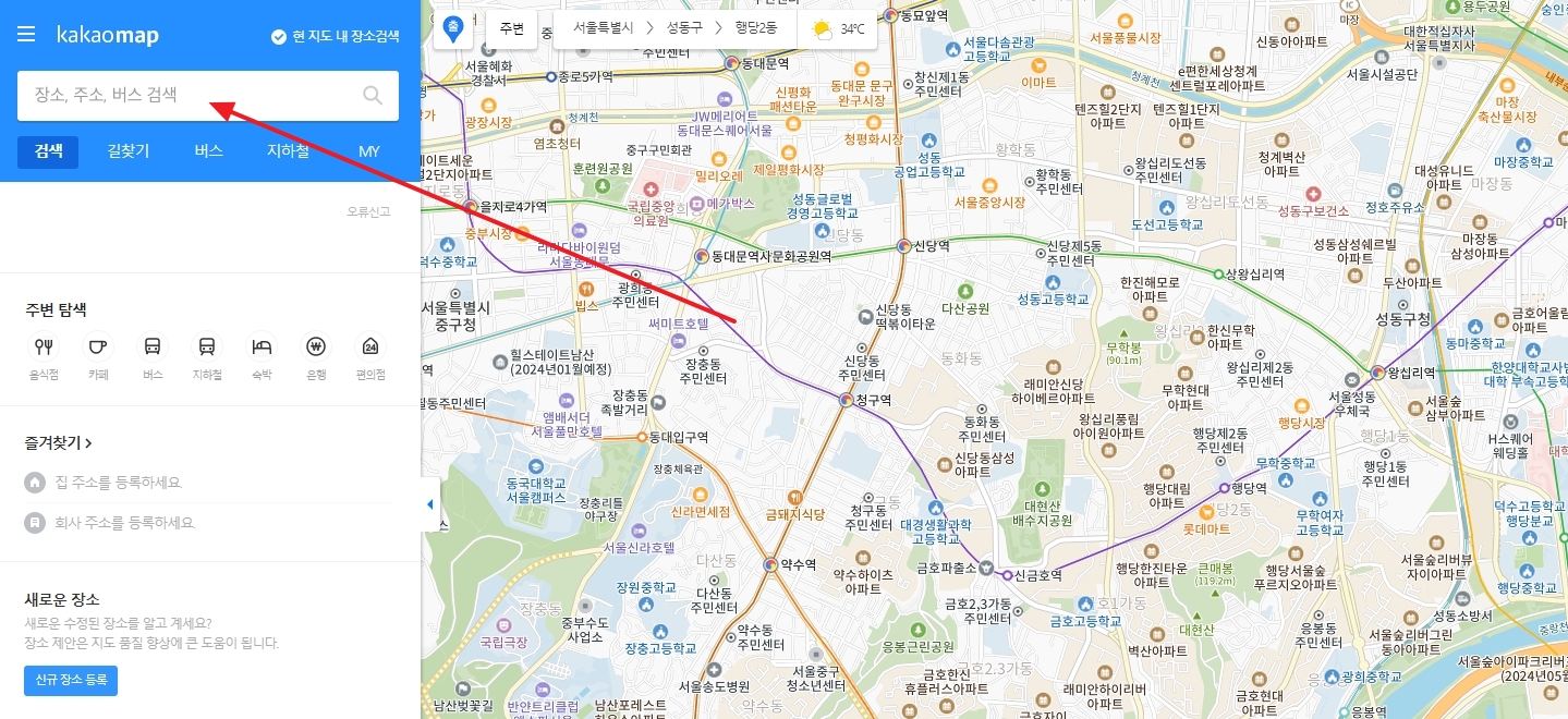검색창에 주소, 장소명, 전화번호 등 다양한 정보를 입력하면 해당 위치를 정확하게 찾을 수 있습니다. 음식점, 병원, 카페 등도 검색 가능하며, 최근에는 리뷰와 별점 정보도 함께 제공돼 더 편리합니다.