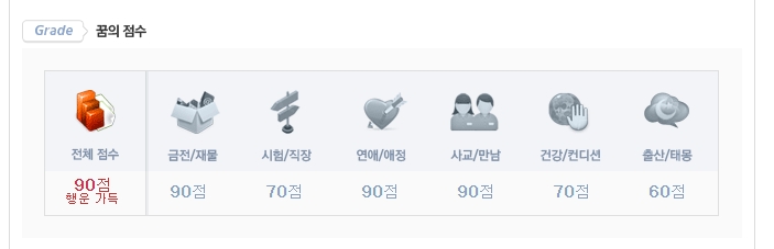 꿈마다 점수 형태의 해석 결과도 나옵니다. 예를 들어 라일락 꿈은 90점처럼 높은 점수를 받을 수 있어요. 이 점수는 꿈의 긍정적인 해석을 반영하는 지표입니다.