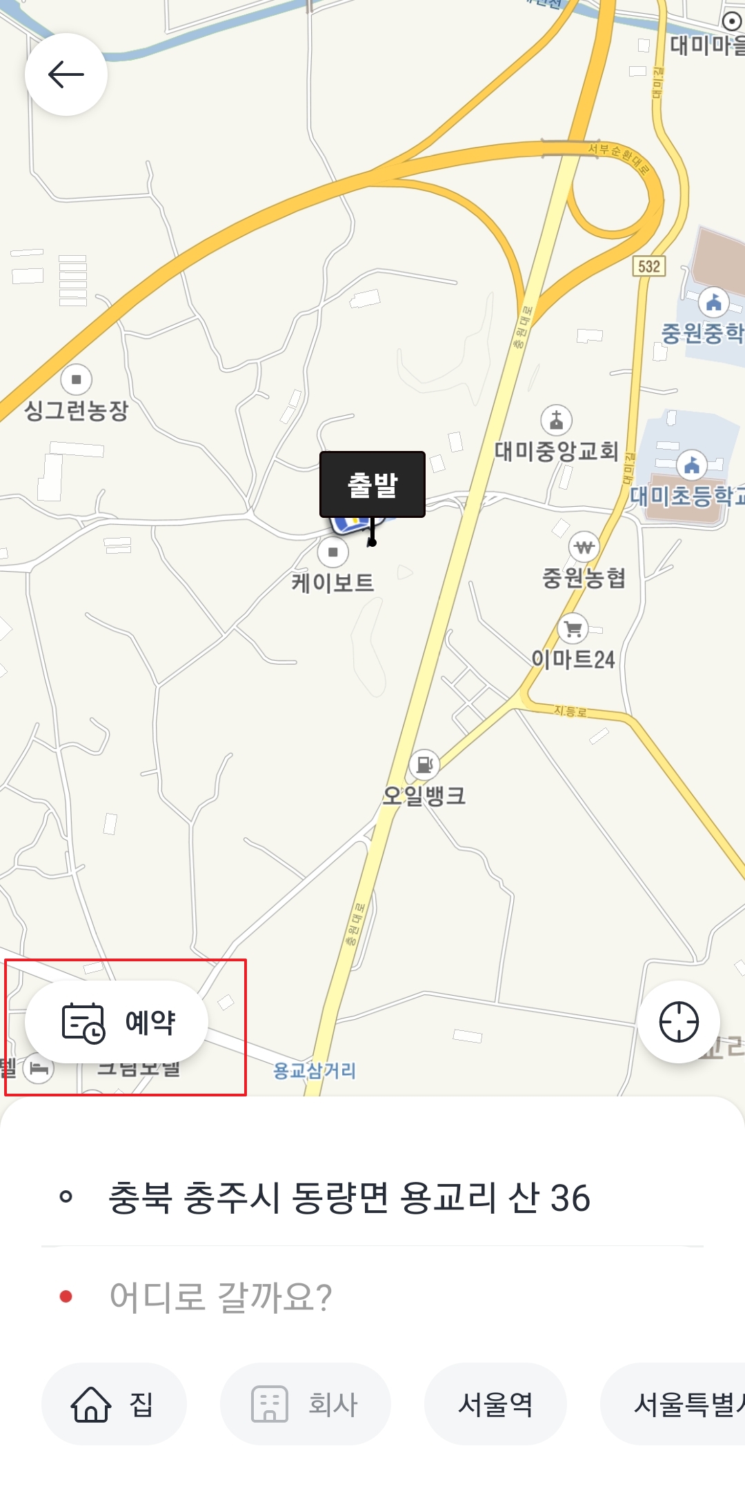 1. 카카오T 앱 실행 후 예약 메뉴 클릭