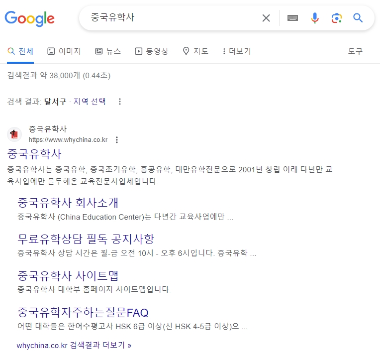 1. 중국유학사 홈페이지 검색