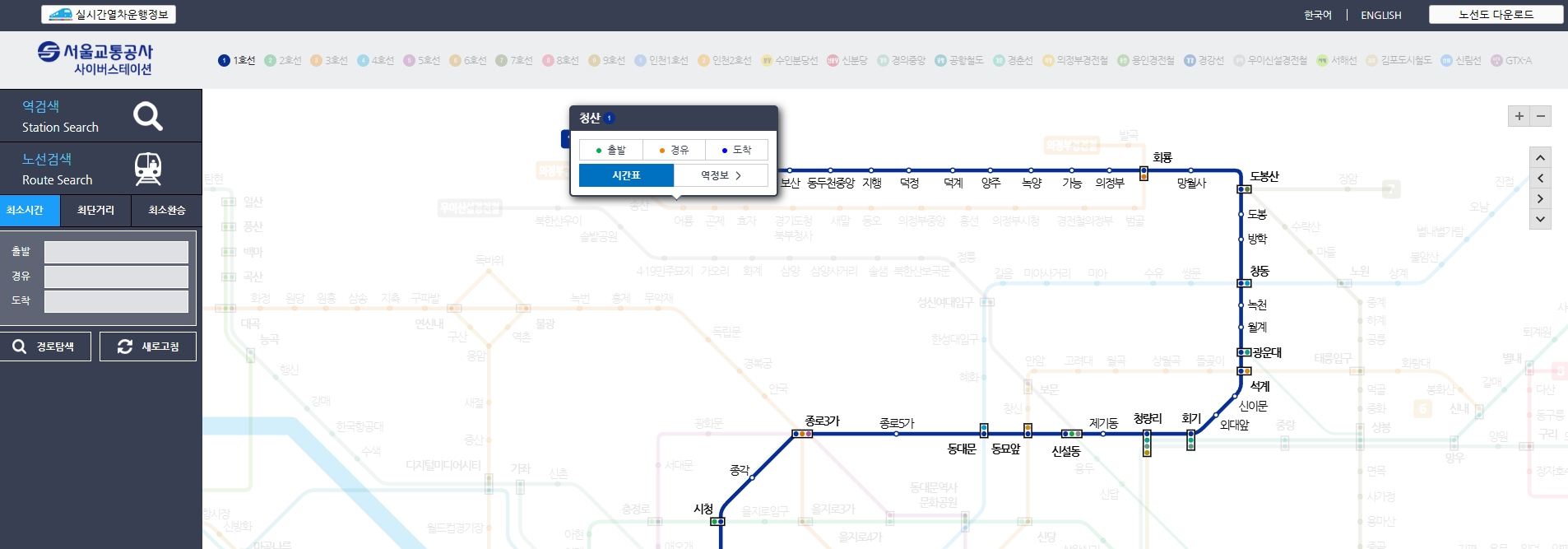 서울 지하철 1호선 노선도 크게 보기 운행 급행 시간표