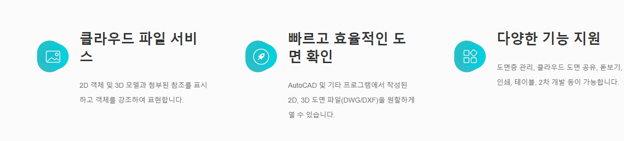 8. 마지막으로, 클라우드 기능을 활용하면 도면 관리도 체계적으로 할 수 있습니다. 2D, 3D 도면 모두 확인할 수 있고, 레이어별 설정이나 간단한 편집 기능도 포함되어 있습니다. 공유 기능을 통해 외부 협업자와도 도면 내용을 빠르게 공유할 수 있어 실무에 강력한 도움을 줍니다.