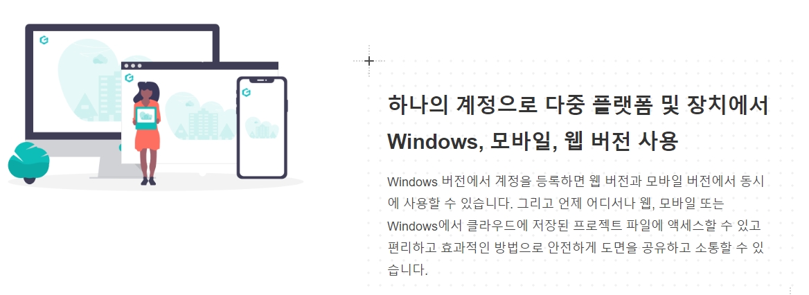 4. 다양한 플랫폼에서의 호환성도 DWG FastView의 큰 장점입니다. 하나의 계정으로 PC, 모바일, 웹에서 모두 사용할 수 있으며, 도면을 클라우드로 공유하거나, 다른 장치에서 연동해 열람할 수 있습니다. 작업 중간에 기기를 바꾸더라도 이어서 볼 수 있어 작업 흐름이 끊기지 않습니다.