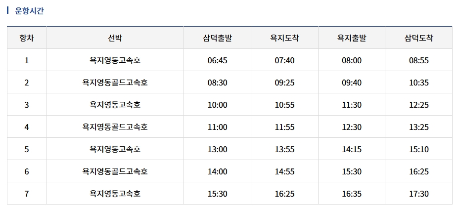 욕지도 배 시간표는 삼덕항에서 출발하는 배의 출발과 도착 시간을 확인해서 일정에 맞춰 배편을 선택하면 됩니다. 하루 아침부터 저녁까지 다양한 배편이 운항하니 여유롭게 여행할 수 있어요. 또 운임과 특별 운송 기간 변경 사항도 미리 살펴보면 좋아요.