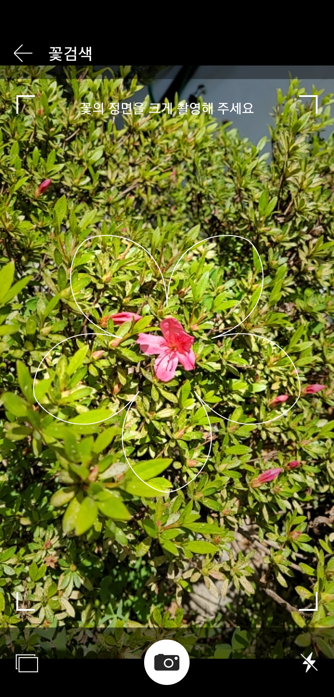 촬영 외에도 갤러리 아이콘을 눌러 저장된 사진을 선택하면 미리 찍어둔 꽃 그림으로도 검색할 수 있습니다. 이 방식을 사용하면 언제 어디서나 갤러리에 있던 사진을 통해 꽃 이름과 정보를 쉽게 확인할 수 있어 자연에서 만난 꽃을 더 잘 이해하는 데 도움이 됩니다.