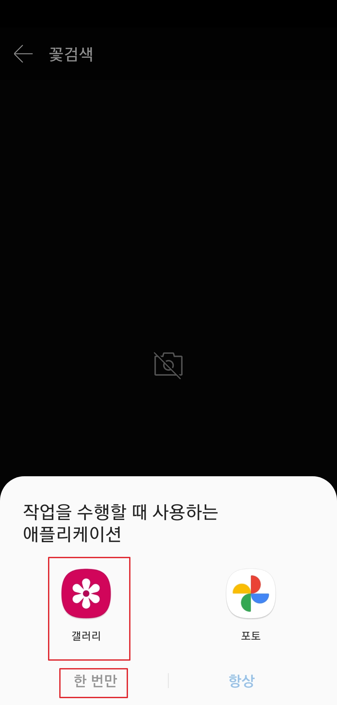 촬영 외에도 갤러리 아이콘을 눌러 저장된 사진을 선택하면 미리 찍어둔 꽃 그림으로도 검색할 수 있습니다. 이 방식을 사용하면 언제 어디서나 갤러리에 있던 사진을 통해 꽃 이름과 정보를 쉽게 확인할 수 있어 자연에서 만난 꽃을 더 잘 이해하는 데 도움이 됩니다.